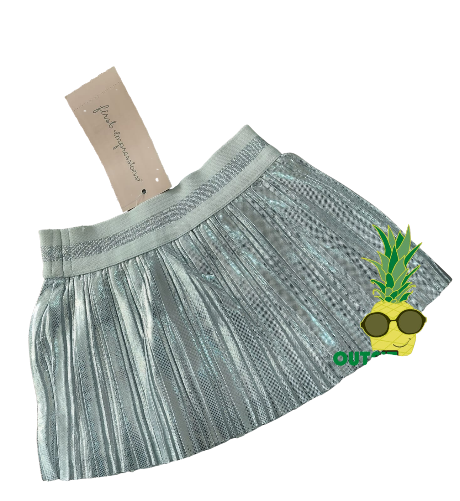 Mini brillo para maxi ternura ✨: plisado con efecto metalizado, tela ligera y suave, y pretina elástica que no aprieta. Ideal para fotos, fiestas y looks con mucho sparkle.